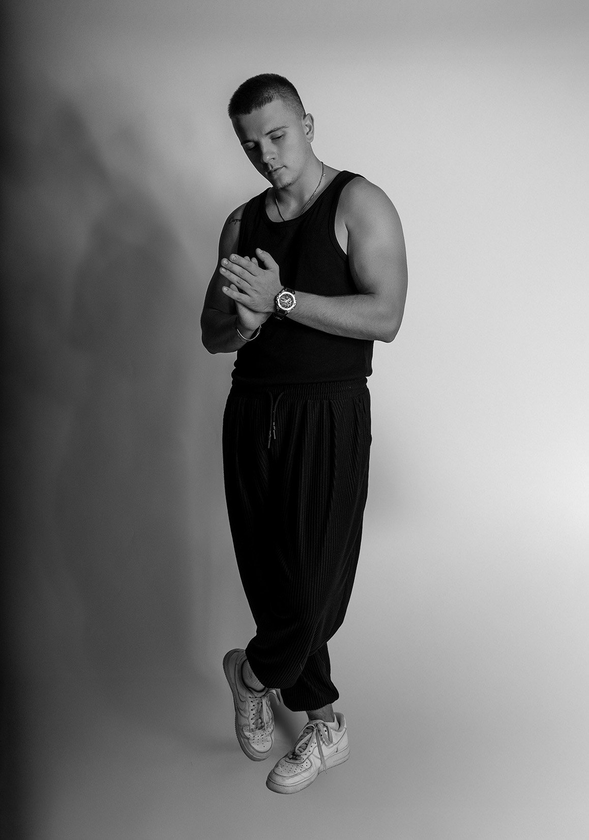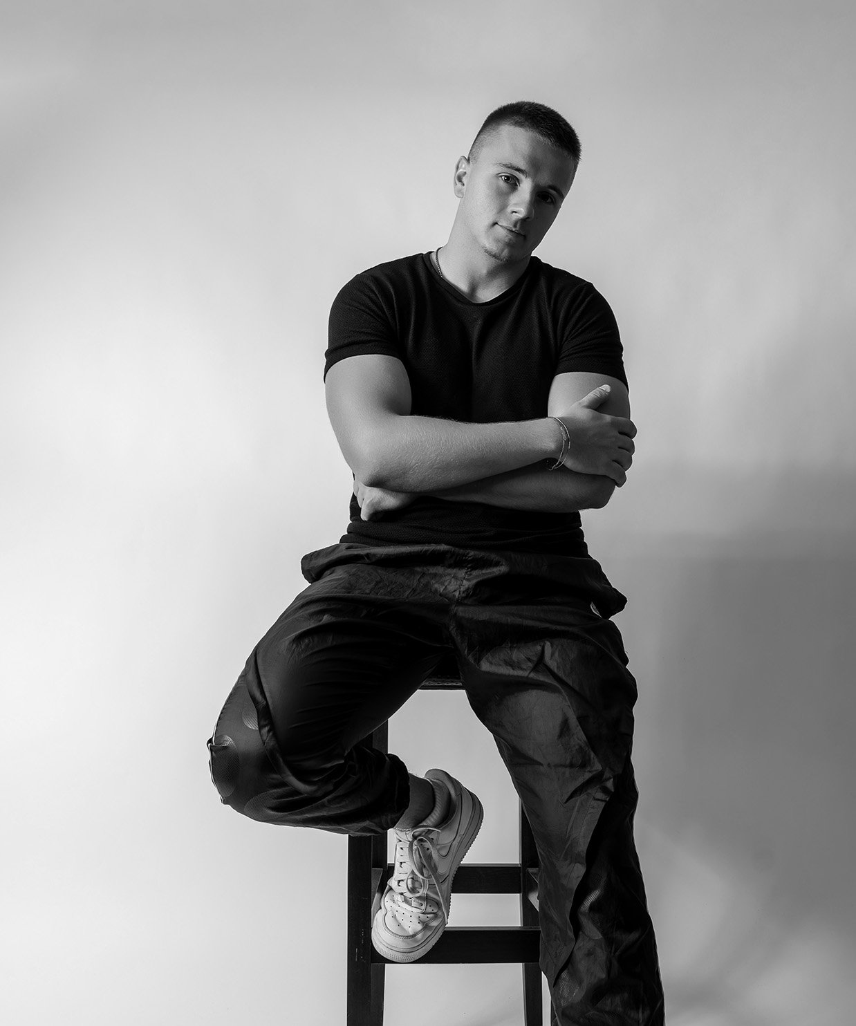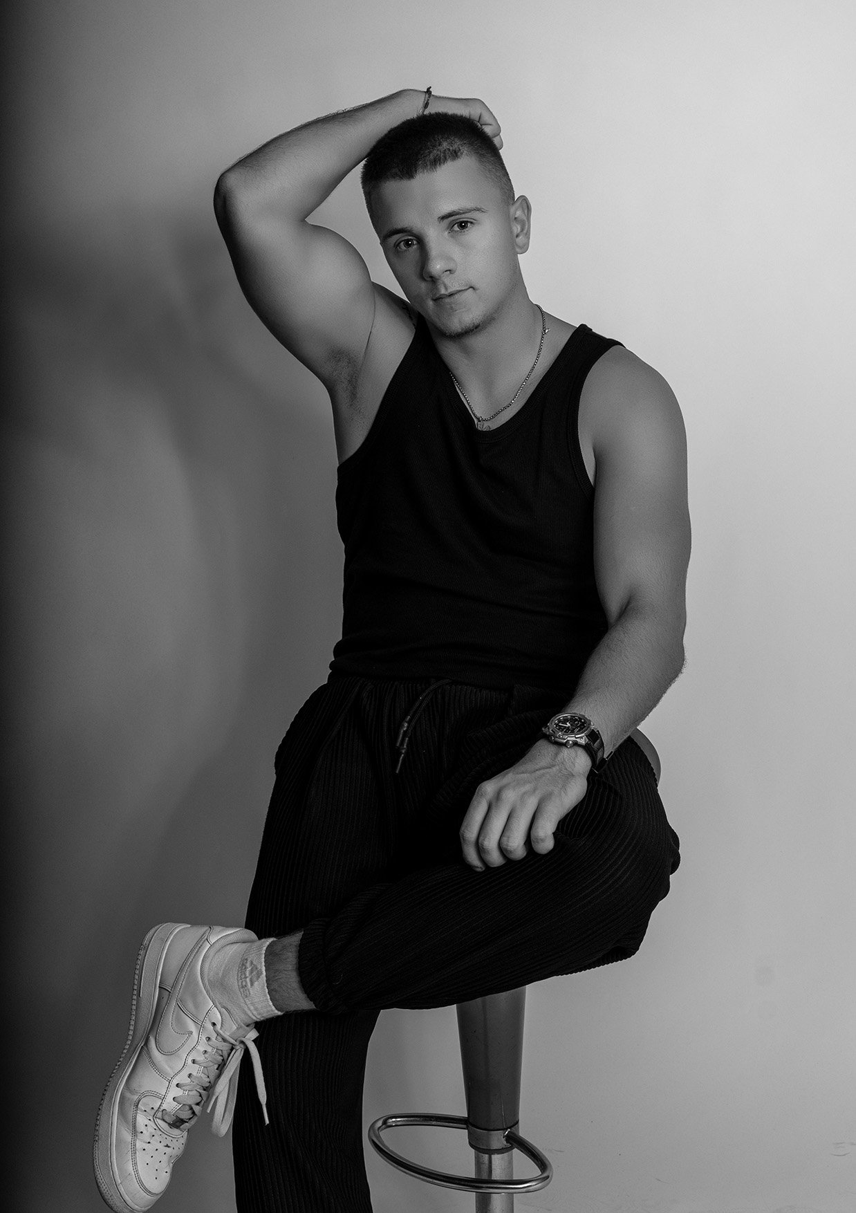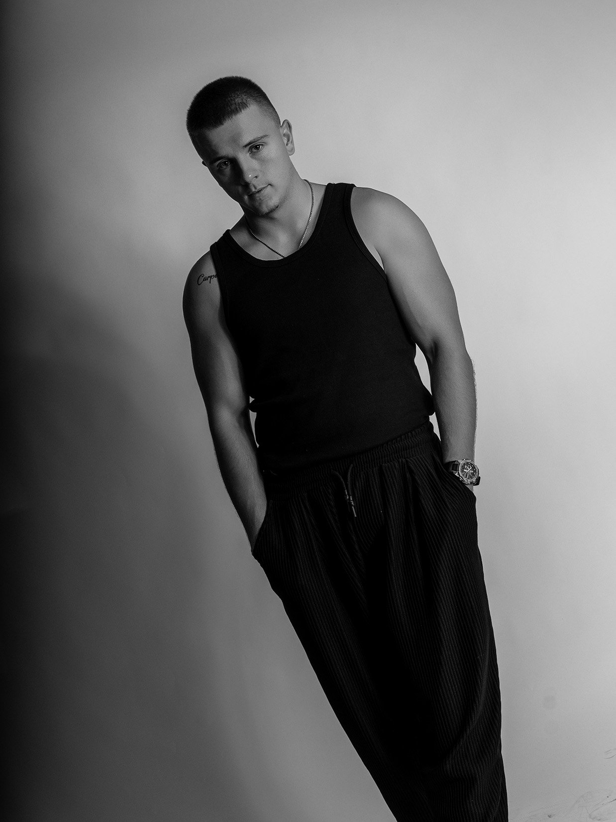 Лична фотосесия за Кристиян. Директни и силни кадри, пресъздаващи неговата идентичност.