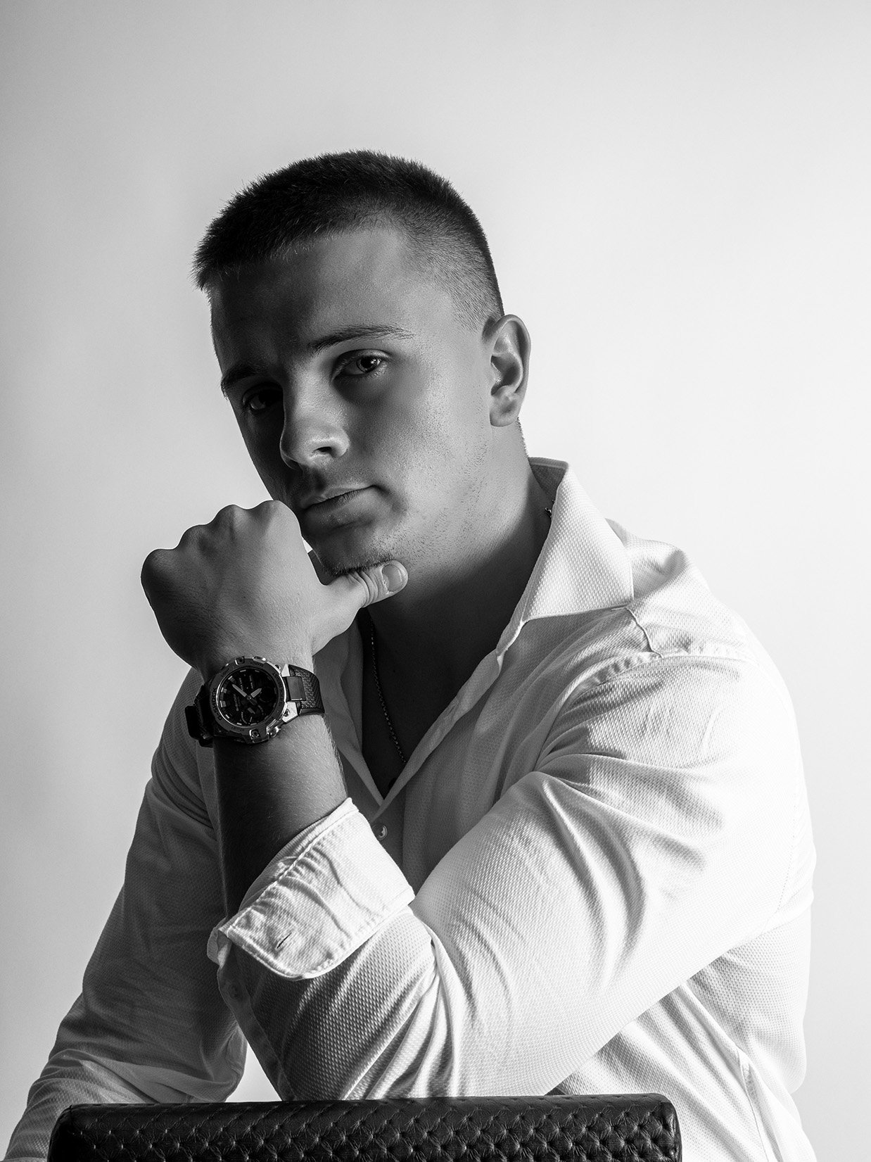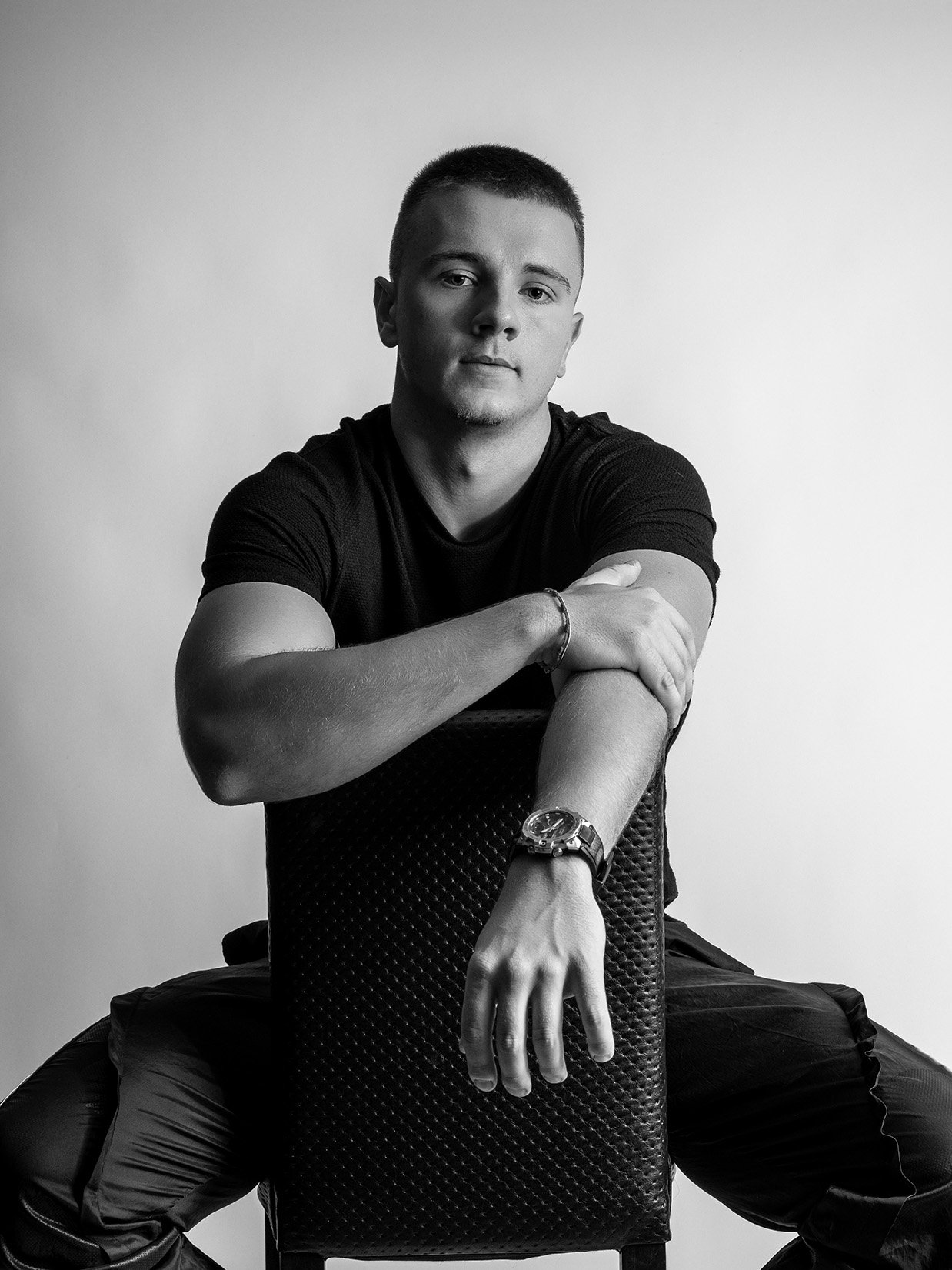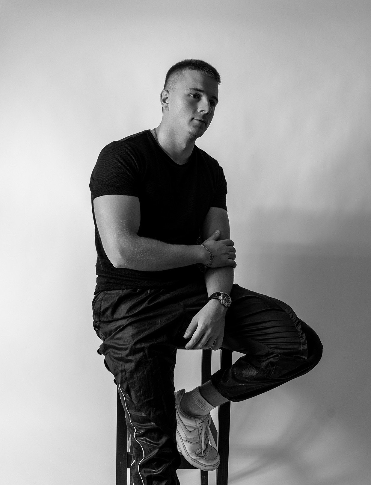 Лична фотосесия за Кристиян. Директни и силни кадри, пресъздаващи неговата идентичност.