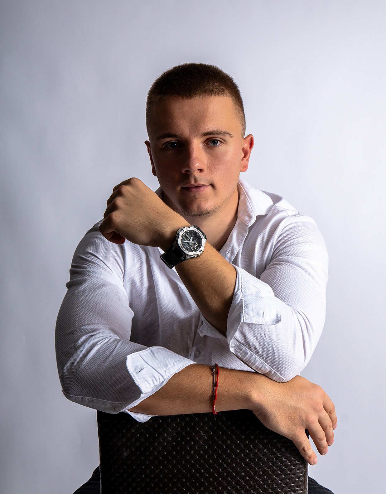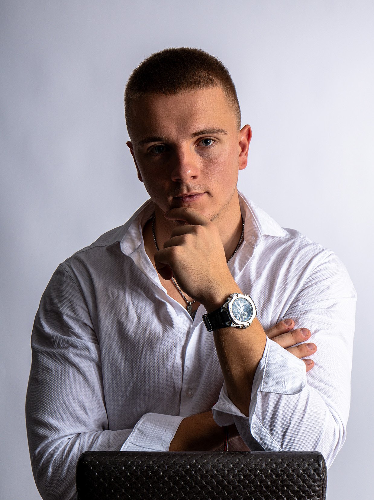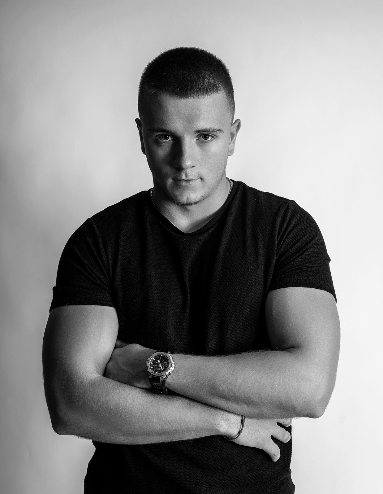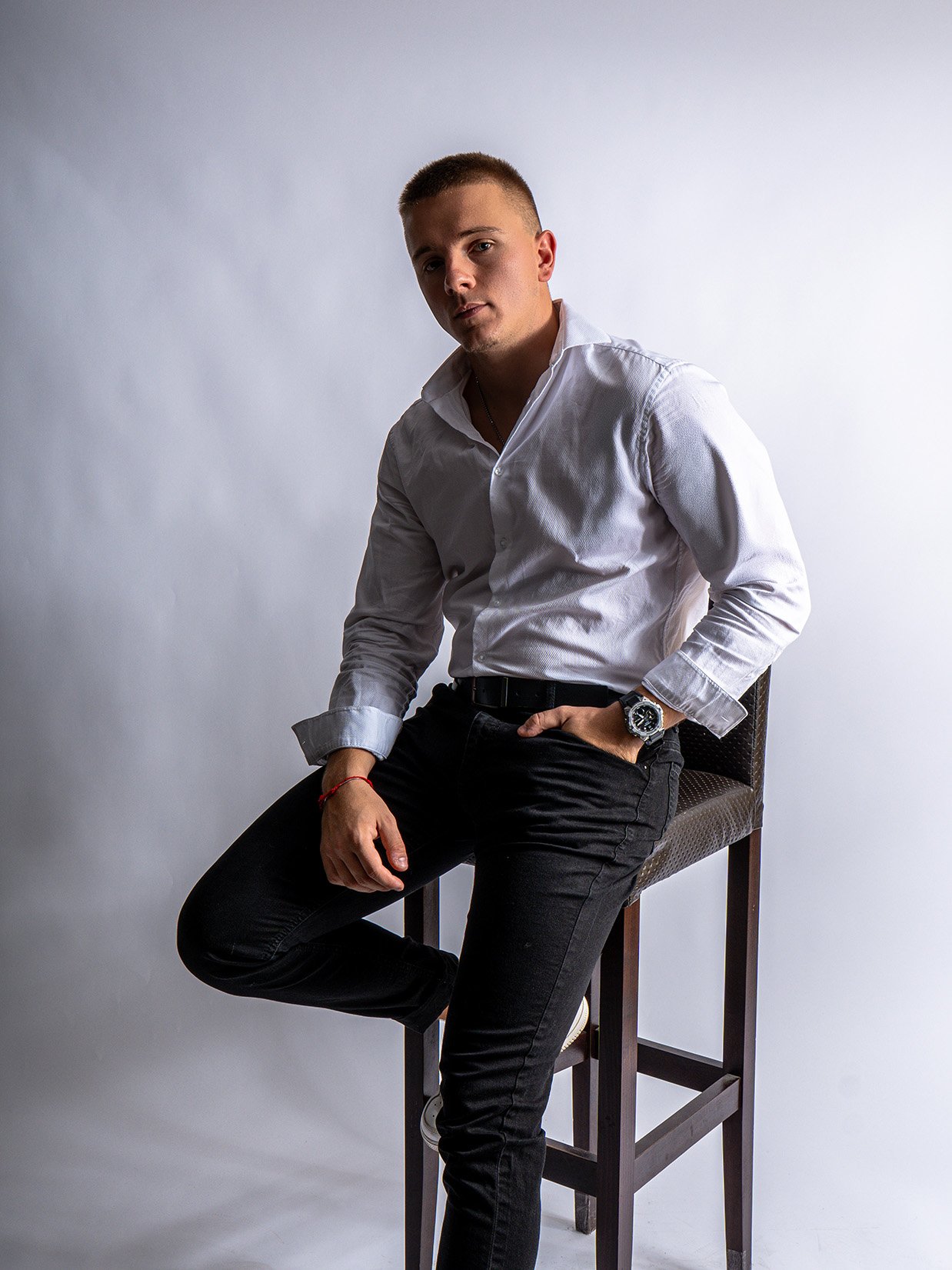 Лична фотосесия за Кристиян. Директни и силни кадри, пресъздаващи неговата идентичност.