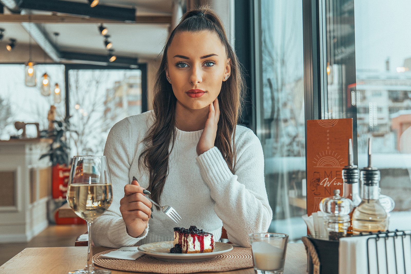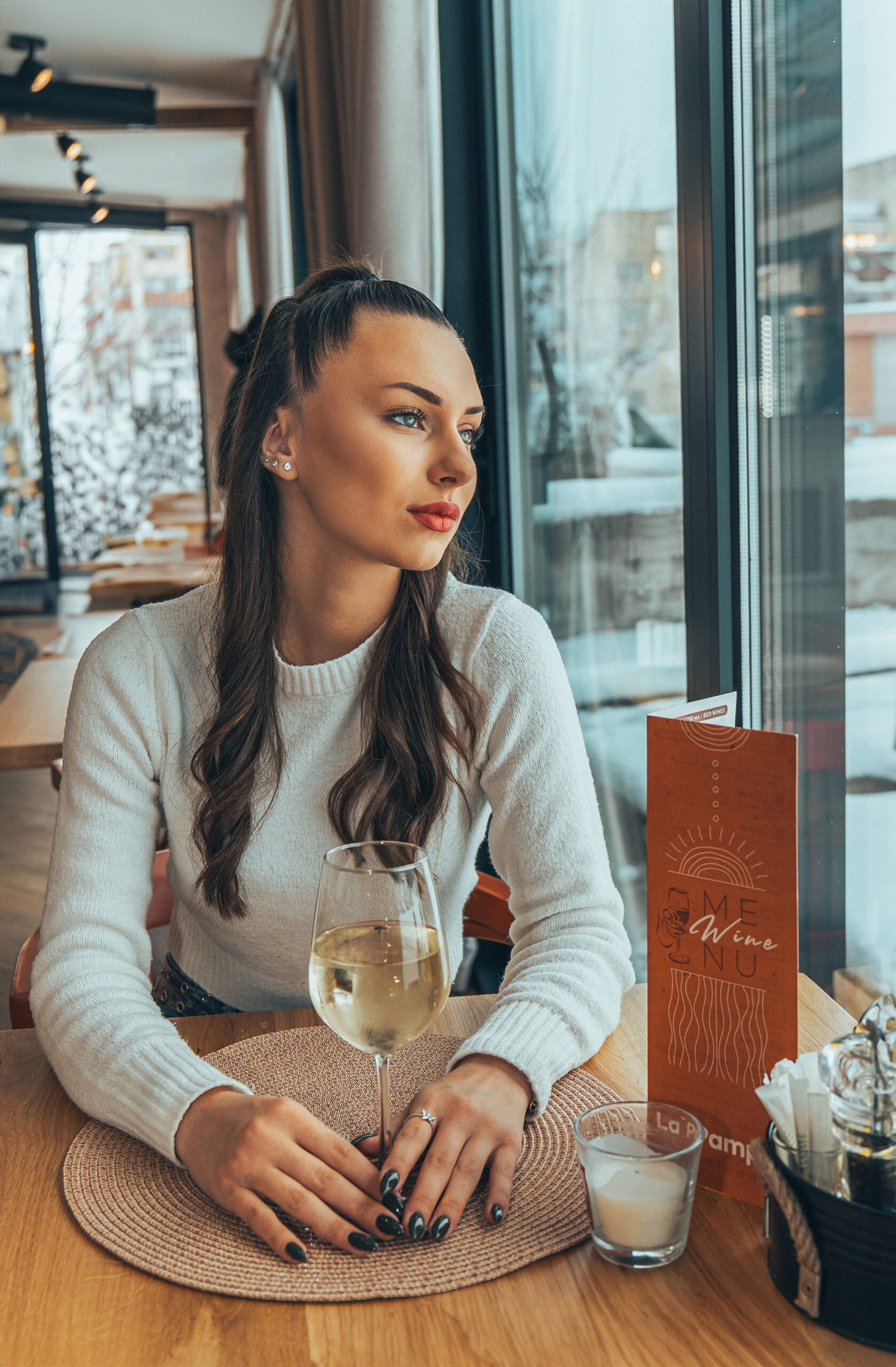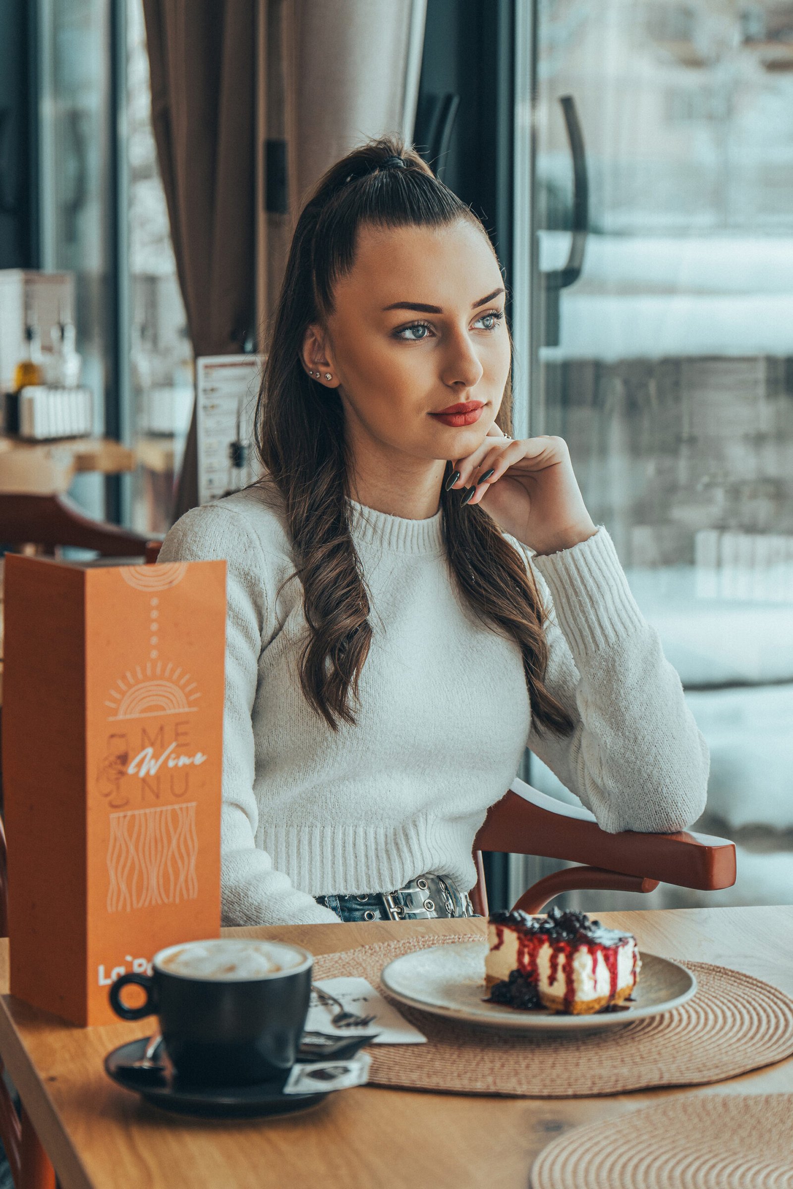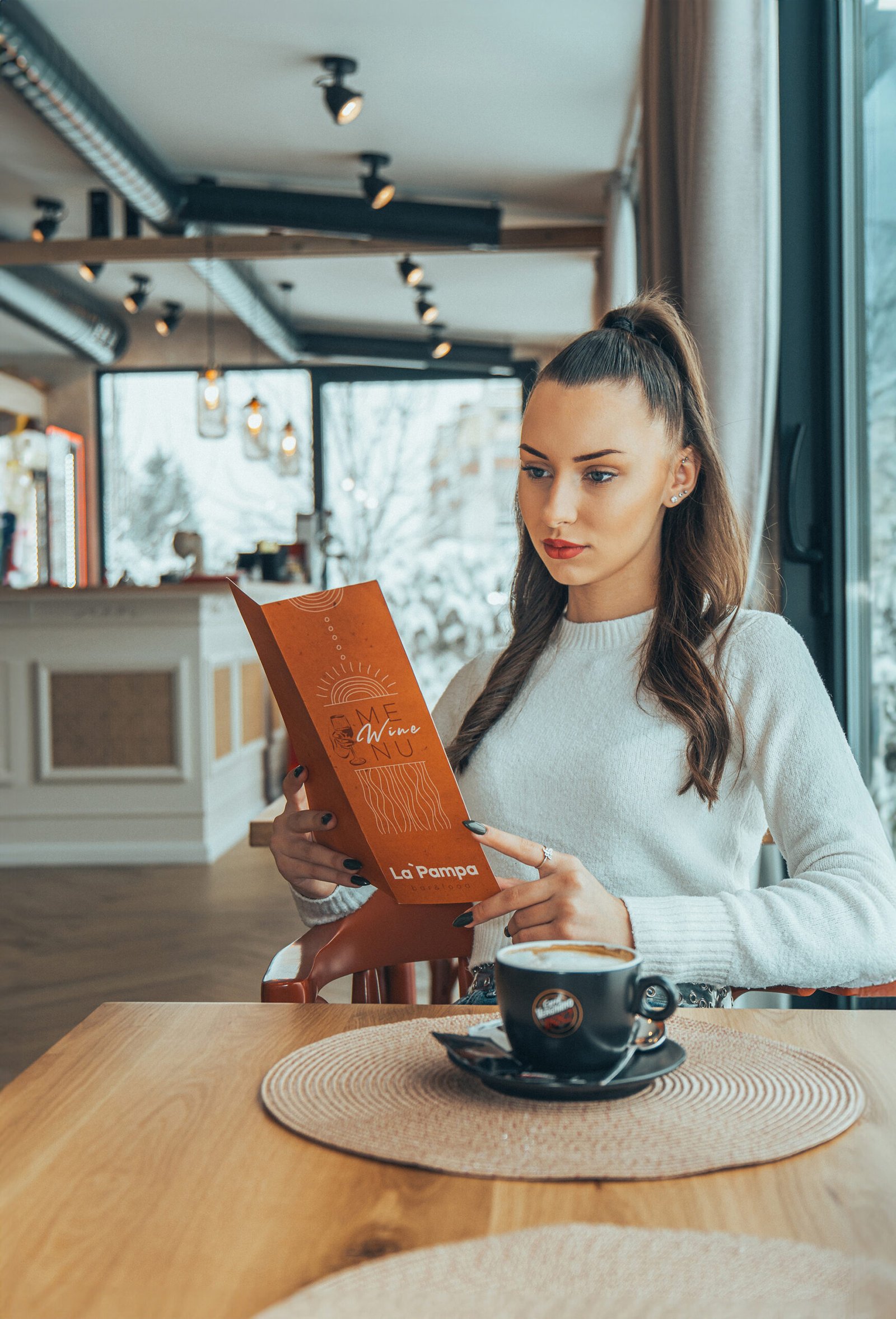 Професионална фотосесия за заведение La Pampa. Уютни и модерни кадри в заведението с модел, създаващи усещане за стил и комфорт.